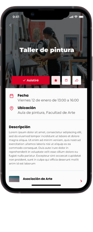 El estudiante podrá indicar su interés y confirmar su asistencia a eventos directamente en la app.